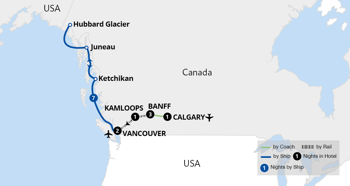 A spectacular discovery of natural wonders awaits on this exploration by land and sea. From the mountain town of Banff in the Canadian Rockies, we marvel at the spellbinding beauty of Lake Louise before boarding the iconic Rocky Mountaineer. This fantastic rail journey transports us to Vancouver, where we set sail on an unforgettable cruise. ...